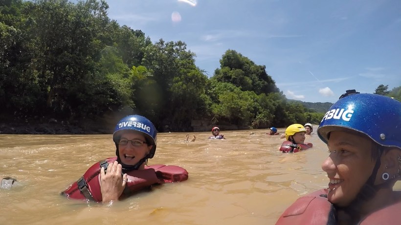 Right then. Back into the water for one more ridiculous rapid hell bent on removing us from the raft, then we were given the option of body rafting which is basically where you jump in and float through the rapids on your back and all without getting too much of the Padas River lodged in your lungs, please. Sounded fucking incredible! All of us went for it with varying degrees of success. We were meant to stay in the middle which is easier said than done. Me and Ozzy ended up way behind the others, by the time they were all back on the raft we were being swept away downstream.