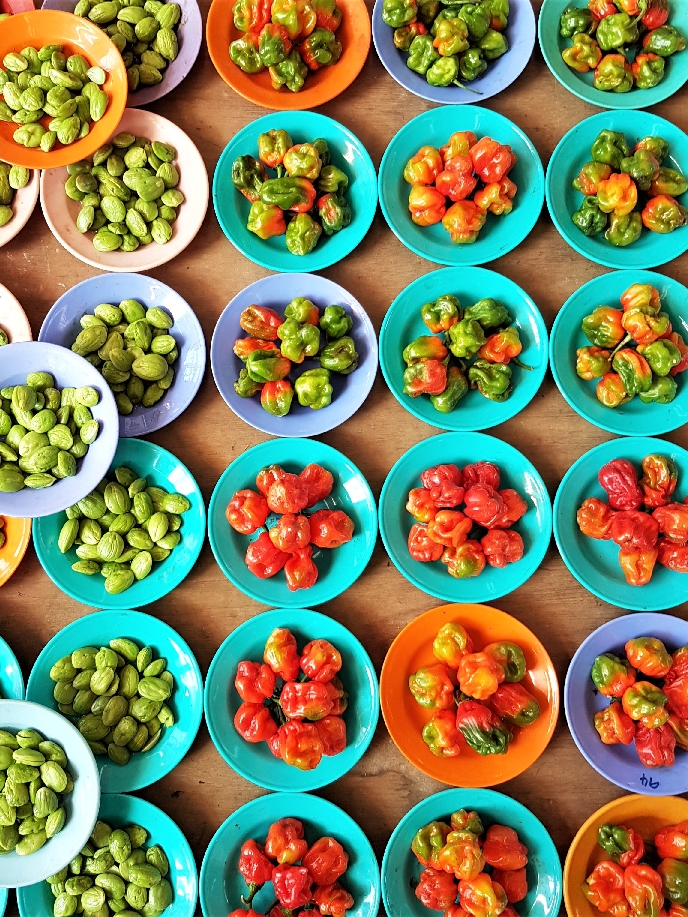 Right then, that needed to be a left for an hour at room temperature in this climate. Longer in a cold British climate. We drove to the market to pick up some more provisions. This was awesome, I’d love to take more photos of markets but I’m generally too shy to ask but with a guide I feel emboldened. I took a shit load of pictures of a bunch of stuff I couldn’t even name. I knew what some of it was and Joseph named loads of stuff but I don’t remember most of it. There was a lot of wild ginger though but that stuff, we learned, doesn’t have roots, just these bright reddy-pink flowers and stems which you can use for cooking. We were to use actual ginger though and this ginger root look-alike called galangal, which could be described as ginger’s less attractive, weaker cousin.