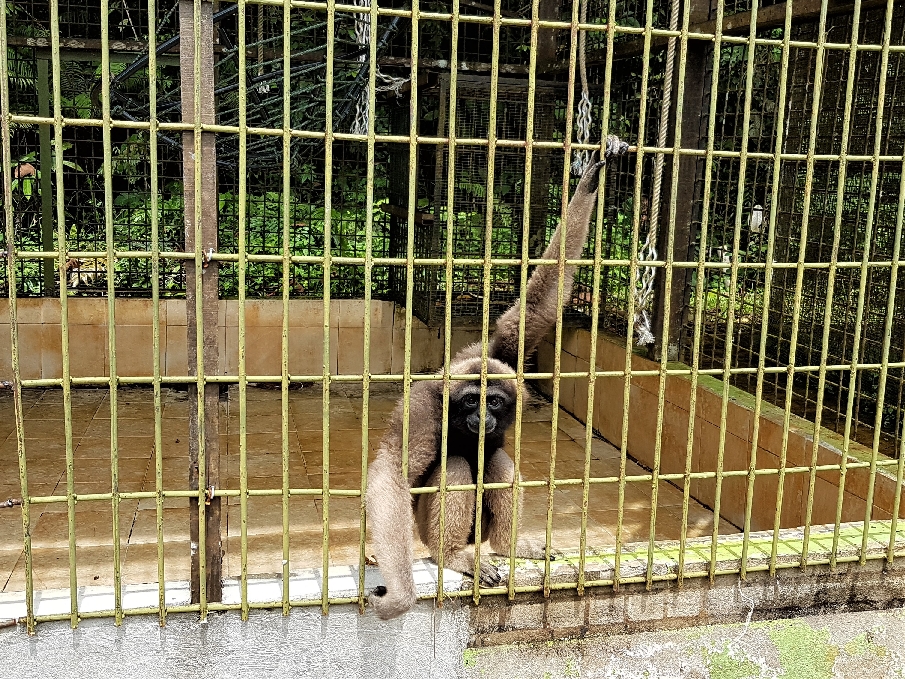 If you’re after ticking all of your Borneo boxes with very few shits as you how you see the animals then this is where you need to be. We saw clouded leopards in tiny cages, birds of prey, several crocodiles penned in together. One of the gibbons legit threw shit at us, turns out this is a thing. It had a little pile of poo by the bars which it swung over to and picked bits off to fling at us. He was a bloody good shot too, we had to jump out of the way. I read somewhere that this is a trait of an intelligent animal kept in captivity, they’ve figured out that it evokes an emotional response from the humans. Orangutans with the saddest faces you ever saw gazed out through bars, and one of them sprawled out on the floor, barely moving, a lot like me the morning after I’ve attempted to fit all of the vodka in the world into my liver the night before.