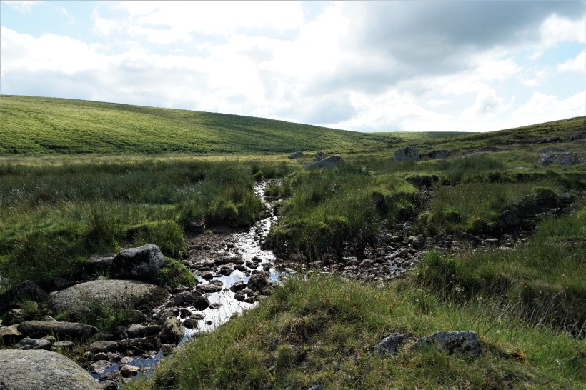 Dartmoor is very squishy in parts. We were lucky that a lot of places that looked like they had the potential to be squishy were currently dry. I’ve a feeling that after heavy rain or in the winter, Dartmoor is one big squish. We eventually managed to navigate around the mass of squish and get back onto something that sort of resembled a path, which promptly disappeared again. Seriously? We checked all our maps. This was definitely where we were meant to be. We pressed on, I kept my phone in my hand to keep an eye on our direction so we didn’t end up too far off the route but we still managed to end up ankle deep in marshland, long grass up to our arses.