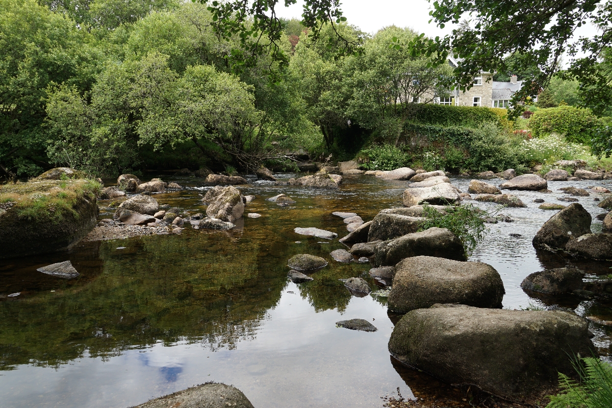 So, without backtracking, in order to get back onto the Two Moors Way we’d have to do a loop through Dartmeet, and of course the River Dart runs through Dartmeet, and on account of the way the river flows we’d have to get over this river. The map showed way to get across so my naive little head decided it was a bridge. It was not a bridge. It was stepping stones. Fucking stepping stones. I fucking hate stepping stones, and you’d hate them too if you also had the balance of a badger on ketamine. We watched as DofE group jogged over them like they did it every day on the way to school, then it was our turn.