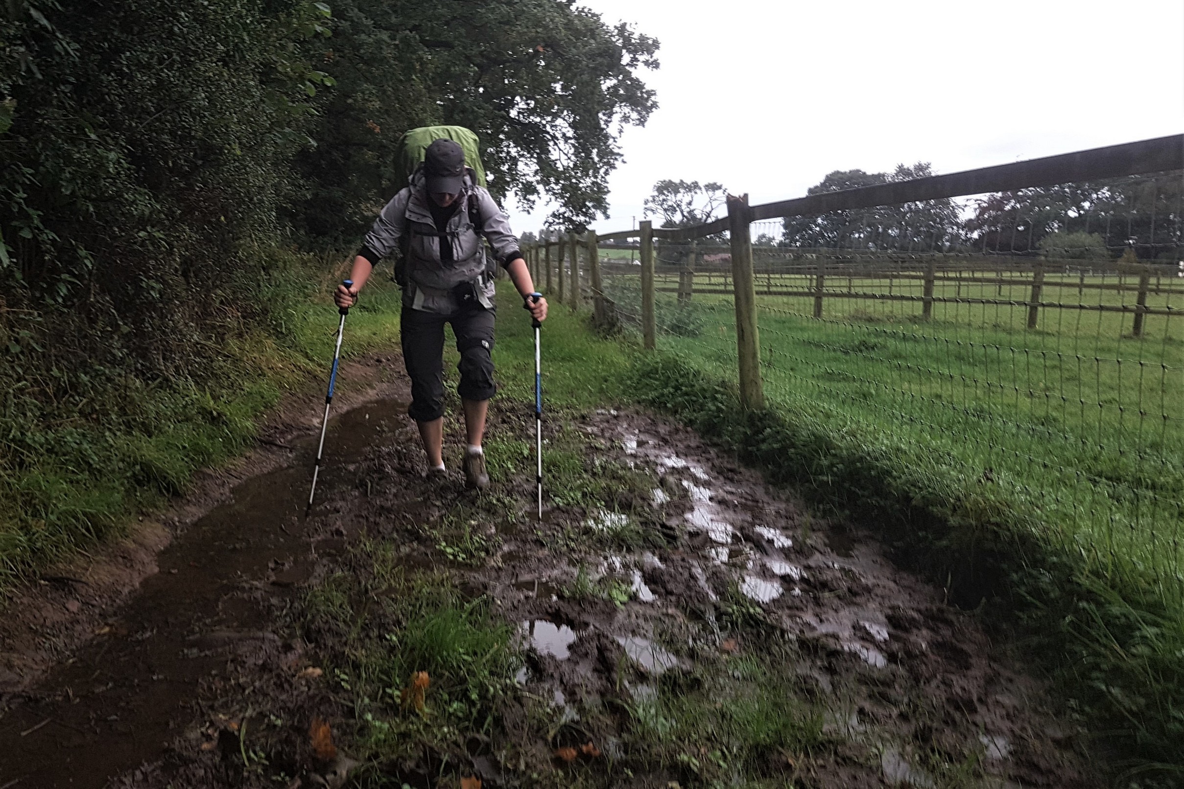 Today would be our latest start on account of the fact breakfast wasn’t served until 7.30am. The first two days we were up at 5.30am and on the trail by 7. Today it was closer to 8am by the time we were retrieving the last of our things from the drying room and getting on our way. Once again the weather forecast was bleak but it wasn’t currently raining, we’ll take that, but after the relentless pissing downpour of the previous day which started as we settled into the common area at about 3.30pm and literally hadn’t stopped by the time we went to bed, the trail had pretty much turned to mud and ponds. Tarrant’s shoes weren’t at all waterproof and my left Merrell was leaking like the Titanic despite being brand new. Great.