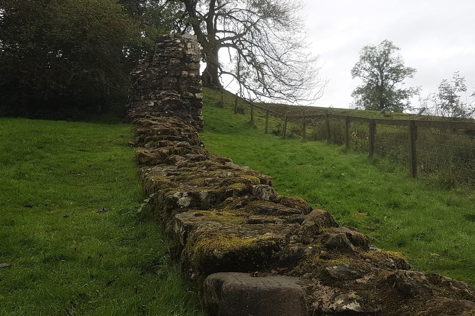 We picked our way through the slush for about an hour and a half until we finally came to our first bit of actual wall-shaped wall at Hare’s Hill. I mean, it’s wall-ish shaped anyway. It’s not church-shaped. Apparently it’s the tallest section of intact wall and by rights it shouldn’t even still be intact as most the stone around these parts was robbed in the 12th and 13th centuries to build the nearby Lanercost Priory. One theory is that it was used as part of a medieval farm building around the time of the stone theft so it was left alone.