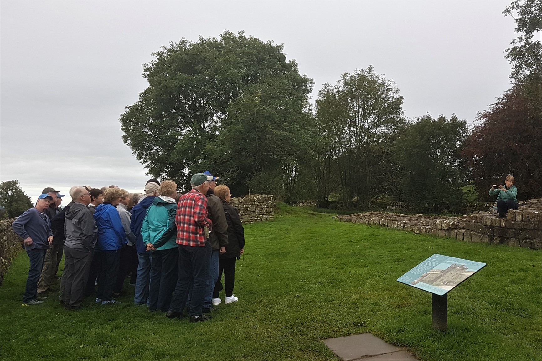 Our next bit of wall came to us in the form of Turret 52a, an observation tower at Banks East, and we arrived just as it was being swarmed by a bus load of American tourists. The tour leader must have spotted us with our backpacks and hiking poles and sweaty complexions, and she bee-lined straight for us. “Hey, are you guys walking the wall?” We replied that we were and told her it was our third day and we’d only just started to see some actual wall. She turned to her group and announced our presence with, “Guys, they’re walking the wall, this is their third day, and this is the first bit of wall they’ve seen!” Suddenly the large chunk of ancient history was a bit less interesting to the gathered masses and we fielded questions about the hike from the group. A couple of people even asked for photos. We’re going to be on some random American’s Facebook album. Hashtag celebrity life.