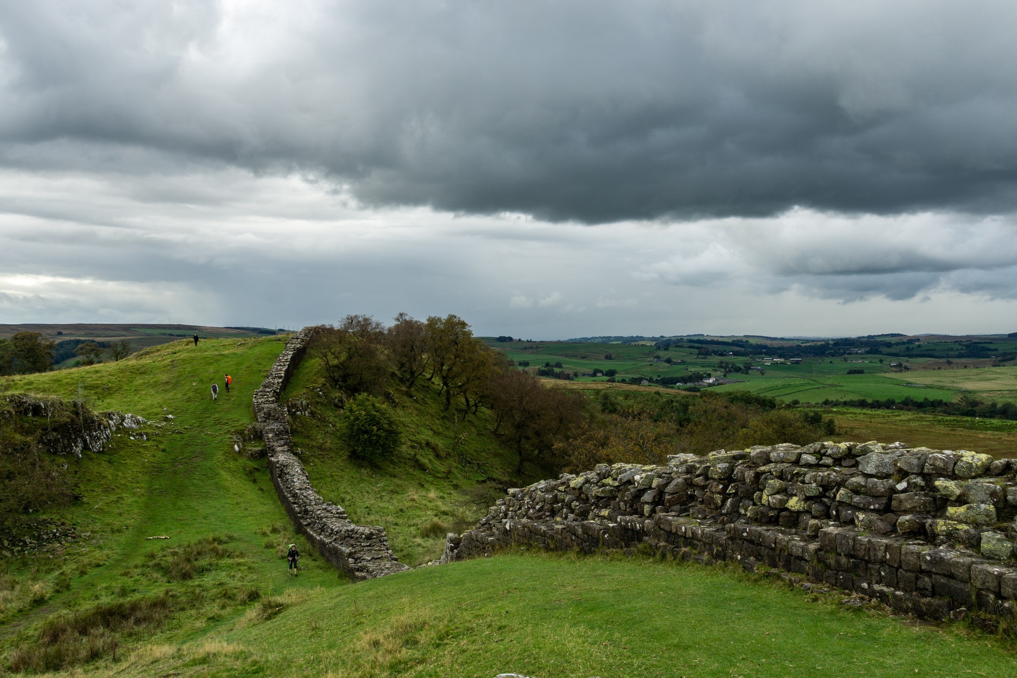 Once we were past Walltown National Park Centre though (There’s an actual toilet here by the way, if danger-pissing behind a bush isn’t really your thing), that’s when shit started to get real. Walltown Crags are just utterly, utterly beautiful. They’re just hills and hills and hills, with cliff faces dropping off into a stunner of a valley, and the wall tracing a line along the edge. How in hell did they get all that stone up all these bastard hills? We only had about 15kgs each and we were very, very aware of our knees by this point. It wasn’t as hard as it looked to be fair but I think that had a lot to do with all the stopping and marvelling we did.