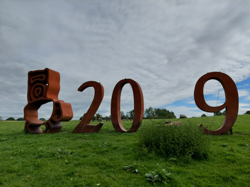 Despite the fact Lancashire LOOKS flatter than North Yorkshire, it’s bloody well not. We tackled some brutal bastard hills today. I mean, okay, it was mostly flat along the river but there were definitely a few hills thrown in to make your calf muscles sit up and take notice. There were also a inordinate amount of nettles lining narrow, overgrown footpaths, like some manner of Klingon painstik ceremony. And guys, shit got fucking weird for a minute. It started off innocuous enough. We walked through a field with a random tap in the middle which wasn’t working, as if the place had been set up for camping. There was a large sculpture reading “2019” but the 1 had fallen over, and there was a small circle of stones.
