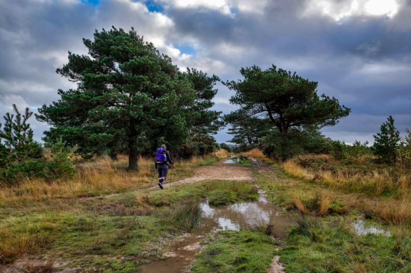 Ashdown Forest throws out some stunning colours at this time of year and you’ll get cracking views of all of them as you slog up and down hills made of mud and regret. I wouldn’t call it a forest though. Sure, there are some trees, but it’s mainly gorse and dead ferns. It’s a great place and we’d already seen more people here than we had on the rest of the trail. As in two. We’d seen two people. It’s possibly the time of year but there were delightfully few humans on the Vanguard Way. Anyway. Eventually, we found trail markers. We knew they existed somewhere, Tarrant spends a lot of time in Ashdown Forest with a youth group, the whole reason we knew of the existence of this trail was because she’d seen the trail markers and had become intrigued.