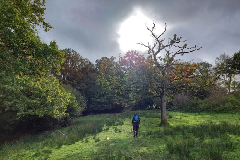 We sat on a bench and shovelled some sandwiches and crisps into our chops for lunch as the sun blazed down on us, then the wind chilled us to the bone, then the spitting rain had a bash at trying to move us on. Seriously, weather. What the fuck? We were only sat there for half an hour. I know it’s autumn but pick a climate and stick to it! Preferably one conducive to hiking and wild camping. There’s a pub in Buxted but we swerved it in favour of covering a bit more muddy ground.