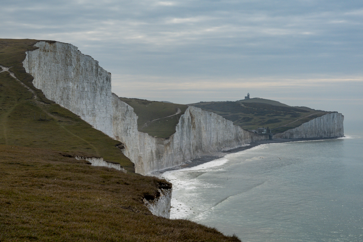 You can clearly see this as you approach the Belle Tout lighthouse. The old path cuts a white path until, well, it just doesn’t. It looks like a fucking dragon took a bite out of it. They already shifted Belle Tout back once, they’re going to have to do it again if they want to keep it. It’s the erosion that keeps the cliffs that striking white colour though. If we did something to them to stop them from crumbling then plant life would grow and turn the cliffs green. It’s a trade off. Okay so we can’t get too close to the edge lest we die horribly as the ground falls into the abyss, but it’s really fucking pretty.