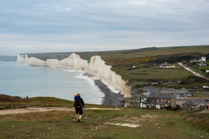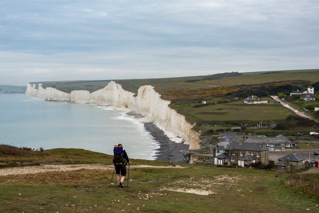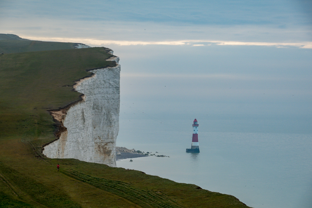 Before you even reach the Seven Sisters you’re slogging up and down hills as your heart tries to make a break for freedom through your ribcage. Up and down over Beachy Head, not forgetting to bag the trig and gawp at the lighthouse but without getting too close to the edge, please. People are a bit too fond of shuffling right to the cliff for a photo, it makes my bumhole twitch just thinking about it. The cliffs are unstable and prone to collapse.