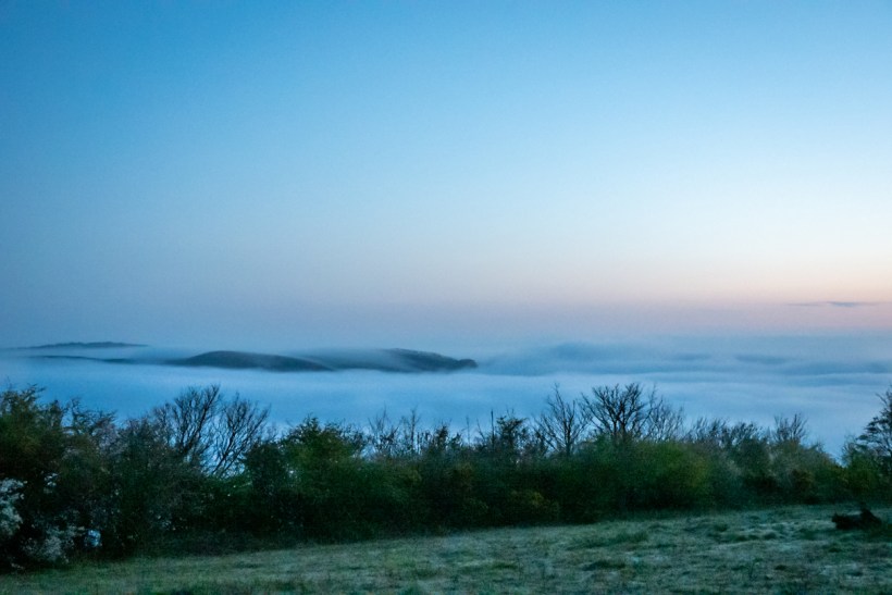 I’ve only ever seen a cloud inversion once before in Kodaikanal in India and it was so beautiful it made me a bit emotional, but to be fair I was due on and I’m the type of person to cry because a cartoon animal got trampled by buffalo. The cloud inversion that greeted us this morning really was spectacular; blue skies above us and the villages below shrouded in fog, but I couldn’t take a photo to do it justice. I tried. I kept wandering off, leaving poor Tarrant to take the tent down, just so I could wave various photographic devices in the vague direction of the pretty.