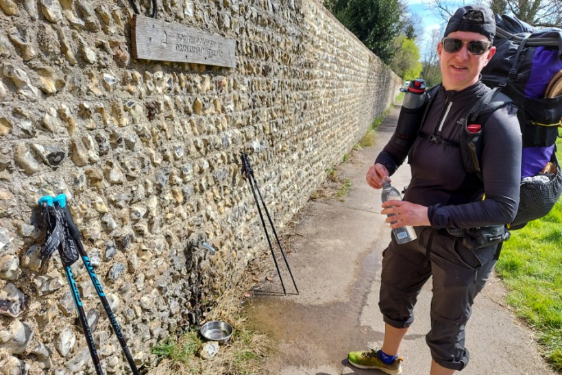 And and and! Our first trail magic occurred. After we popped to the shop we came back and the woman who lives opposite the church was trying to coax her gorgeous puppy on a walk. The two unwashed lesbians barrelling towards it making squee noises probably didn’t help its poor nerves, but we got chatting to the woman, fessed up that we were dossing in the church porch that night, and in conversation mentioned that while yes, what wonderful weather we were having, we probably wouldn’t have any skin left by the end of it.