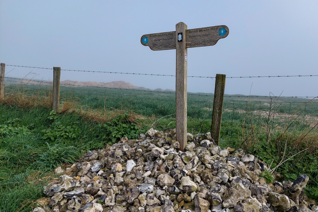 After Southease the trail is flat for a short while then you swing a right and you’re faced with an utterly hideous hill. There’s never any gentle way out of these villages is there? There’s no mellow, winding route back up, it’s just like, boom! Hill! ‘Av it! It doesn’t help that, apart from work, I’ve not been very active this winter. I mean, I’ve done stuff, but that stuff is things like eating cake and drinking beer, and I’m definitely a bit heavier than I was when we did the Vanguard Way. I know this because I now have too much boob for my bra and my waist billows out over my trousers like a gelatinous muffin. Hills are currently a lot harder than they should be.