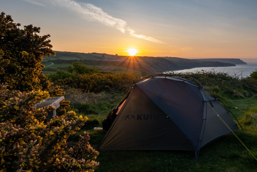 It was early when we found a decent spot to camp but Tarrant persuaded me to pitch the outer so we could get out of the wind. I sat in terror, convinced an angry local would come and give us a bollocking. Two people walked past us that we heard and neither of them even broke stride. To be fair, they’ve no idea who’s in there. Could be a 6’4″ psychopath. No one would consider a neurotic lesbian and her long-suffering girlfriend.