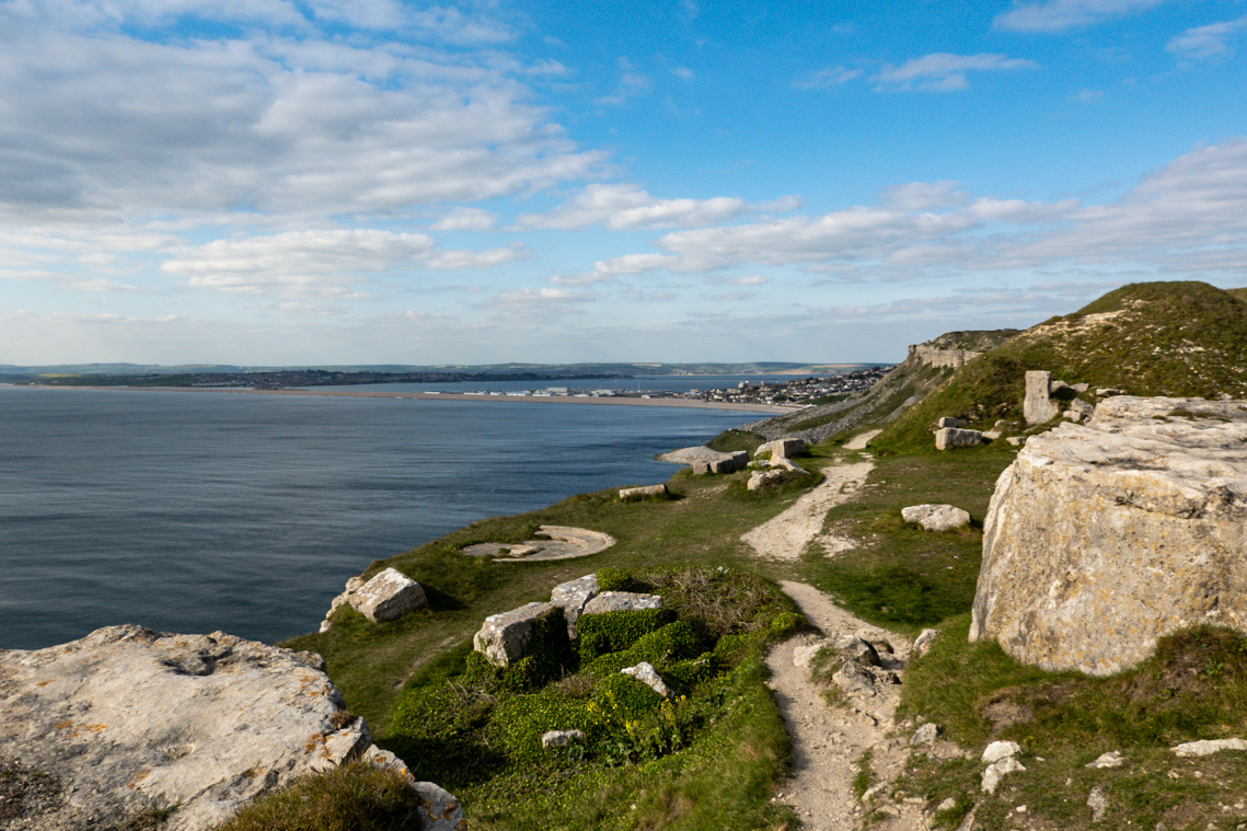 We fully intended to get around the whole of Portland today, emerge triumphant from the other side then head a few miles away where we thought we might be able to bag a quiet wild camp. There’d be nothing on Portland to distract us, it was probably flat and really boring, a bona fide piece of piss.