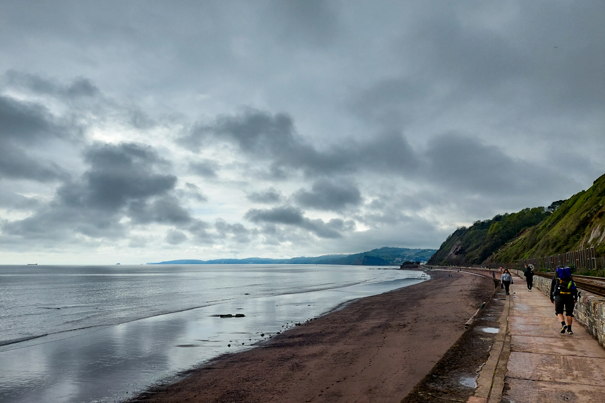 We just took it easy when we got to Teignmouth. We found the Costa and relieved them of some electricity for our powerbanks. I’m usually up for shopping more locally but Costa has an abundance of plug sockets and space and I tend to feel less guilty about hogging a table for two hours as I drag out two cups of tea as long as I can. The smaller cafés need that turnover, they can’t have unwashed hikers taking up their tables. It was nice being warm and dry for a couple of hours but tea races through me faster than you can say “diuretic” so it’ll be fun diving into the gorse for several pisses later on.
