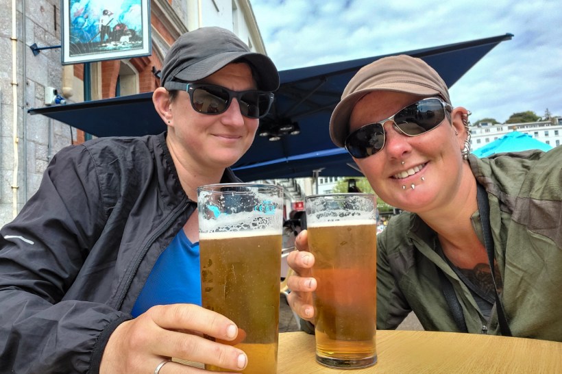 A few more hills via an ice cream later (because are you even on holiday if you don’t eat your body weight in ice cream every few days?) and we hobbled into Torquay Harbour. The sun was out, a beer was required, we found a bar with outdoor seating and applied a motor impairment beverage to our faceholes. Oh dear gods, that was needed. I instantly felt much better. We were fortified and ready to tackle the last little stretch to Atlantis where we were checked in by the wonderful Steph.