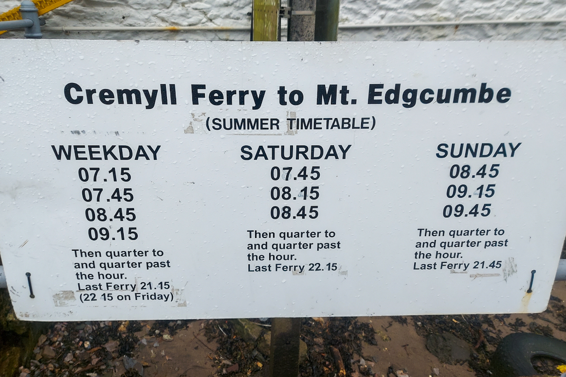 - The Cremyll Ferry is every half hour. See the website for timetables.