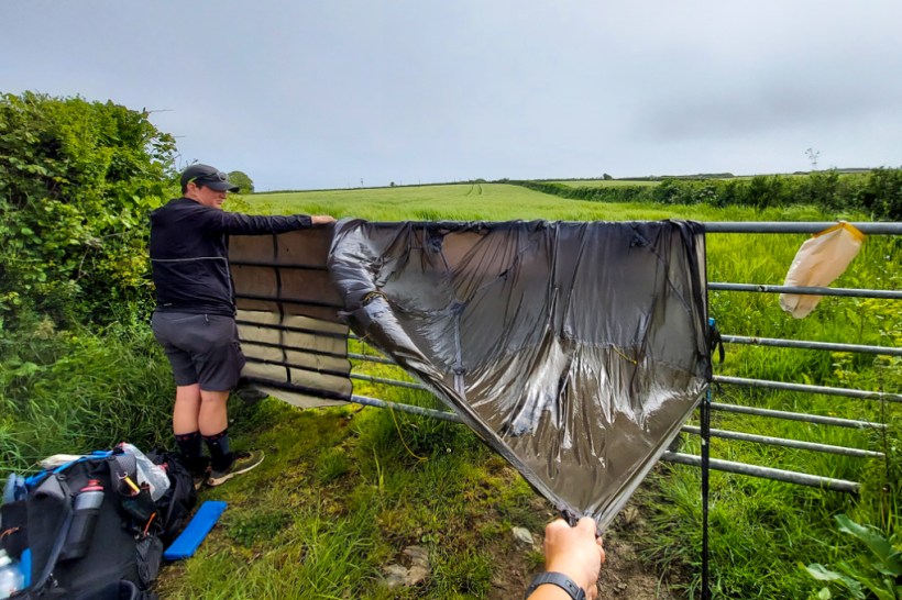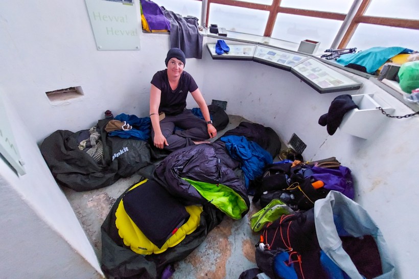 And you know what? Fuck it. We decided we’d bivvy in here tonight. We passed the time with naps until a chap called Daniel burst through the door. Sorry, Daniel. This is our roofed structure. He hung out for a couple of hours and chatted until the rain eased and pitched his tent outside. There’s loads of flat land around the hut. Probably less woodlouse infested too.