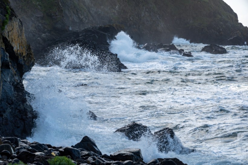 We managed to miss a turn just before we got into Kennack Sands which we’re blaming firmly on the lack of waymarks and not because I keep getting distracted waving my camera at particularly sexy chunks of earth crust, and ended up walking along the beach in our sodden shoes so that worked out well. Nothing I enjoy more than sand clinging to my feet. The sea though, it was crashing dramatically onto the beach like it was having a tantrum. All along this coast today the water was wild, smashing over rocks, kicking up spray. I could watch the sea all day when it’s like this.
