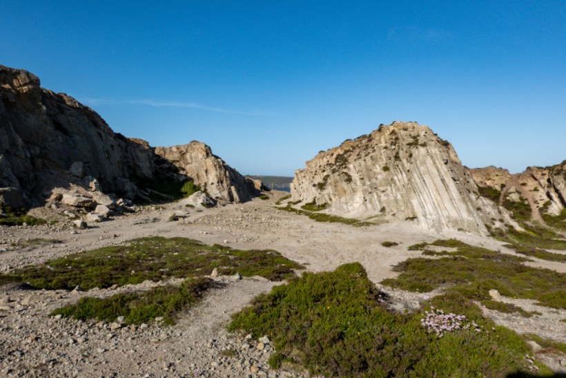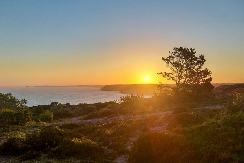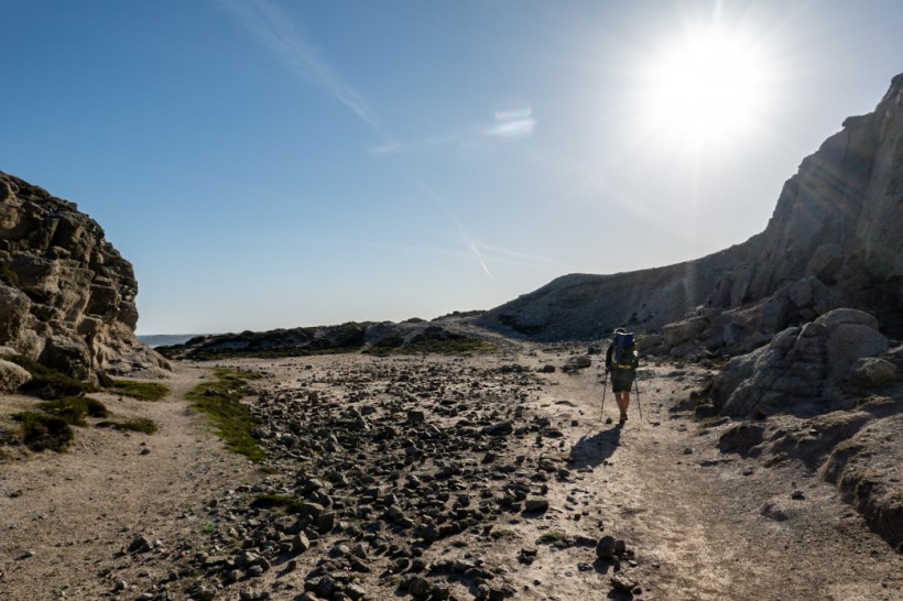 At one point the gpx wanted to send us down a sandy hill, along the sandy beach, then back up a sandy hill. No. Fuck it. Absolutely not. With no acorns to steer us otherwise we made the executive decision to stay on the route we were on and walk through the MOD land, a decision we didn’t regret. Tarrant’s shoes collected enough sand to start her own fucking beach though, I don’t know what it is about her shoes but she has to empty them regularly or there’s no room for her feet. You know how when you do American trails you get given a trail name? Hers would be Sandy Claws. But then mine would be Pebble Dash because that’s what I’ve been doing to various toilets in beautiful villages.