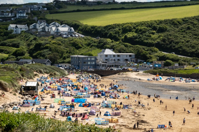 Good job we’d fortified ourselves with sugar given that the trail suggested, nay, insisted that we walk across the beach at Mawgan Porth. Walking on sand is enough of a bitch but it’s half term, the beach was packed, we had to dodge windbreaks and parasols and small children digging large holes. Like, really fucking massive holes the size of bear traps! How does something so tiny dig something so big with a plastic spade? If an adult were to dig something that size there’d need to be a full risk assessment and mandated rest breaks.