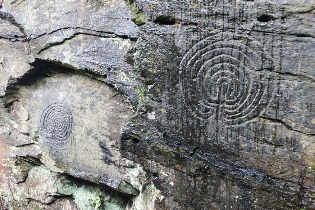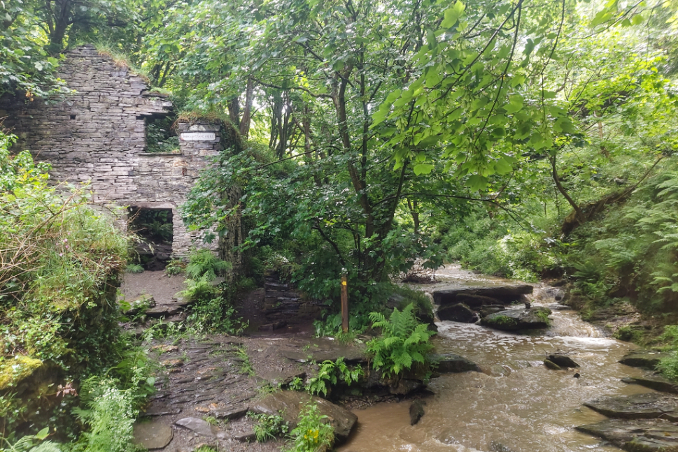- The mill ruins aren’t signposted. Follow the signpost for Halgabron when you get to the bottom of Rocky Valley and follow it maybe 200 metres. You’ll walk right to the mill. The labyrinths are around to the left.