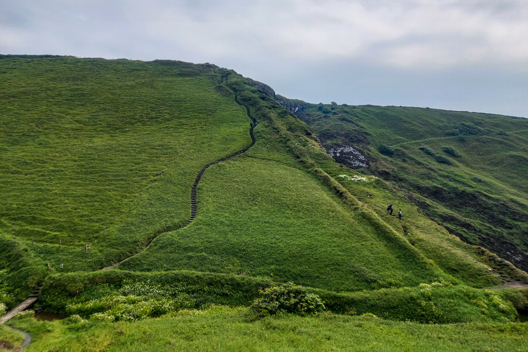 So it was 10am by the time we walked back past the castle to pick up the trail again and it was straight in with an ascent. We watched some coasteerers for a bit as an excuse to not walk up said hill, but ultimately we had to crack on with our day. It seems I’m very much a fair weather hiker. I mean, I will of course walk in the rain if I have to, I’m British, I’d never leave the house if I refused to go out in the wet. But at the first sign of precipitation I’m all, “Ooh shall we see if there are any beds free at the YHA?”