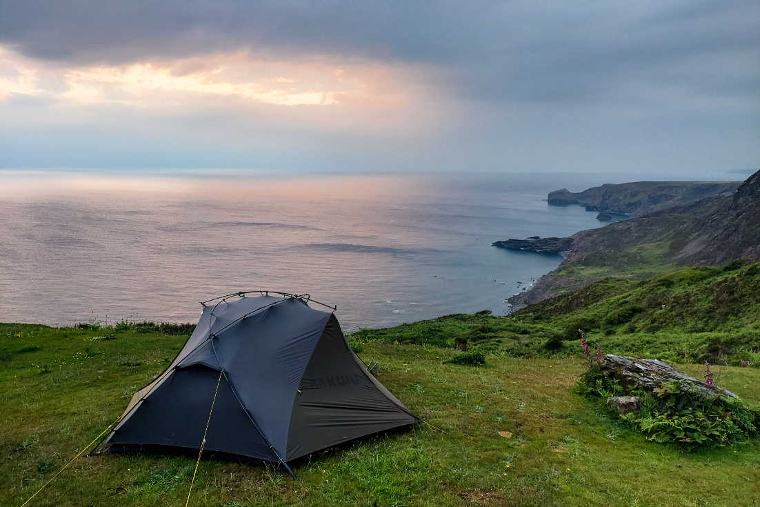 Right. We’d get over High Cliff then start looking. We’d gotten chatting to a bloke collecting for the NCI in Boscastle and he’d told us that this was the highest point on the coast. Bloody looks it too! We got to Rusey Cliffs to a marker stating it was only a mile away, got to the bottom of the hill and found the most perfect camp spot. I’m a bit nervous about camp spots that seem perfect since the cowocalypse the other night but the only shit here was bunny shit and I’m not scared of bunnies.