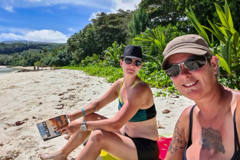 The woman who served us is the granddaughter of the woman whose tortoises they were, it was her grandmother’s restaurant (it’s not clear if she owns the restaurant now or if her grandmother is still with us) and she told us they get baby tortoises every year which they give to Curieuse Island so they can plod free and get neck strokes from tourists.