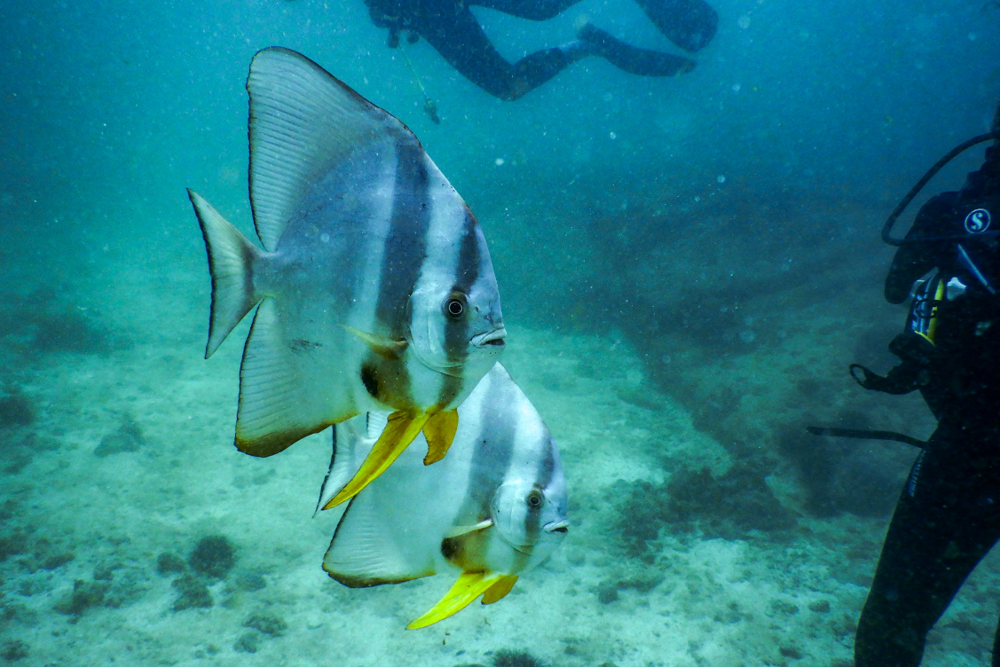 There were starfish and sea cucumbers and, right at the end, several big batfish (which are probably the only fish I can pick out of a lineup) swimming right up to us and chasing our bubbles before realising they didn’t like the bubbles at all then repeating the whole three second cycle. They were brilliant to watch.