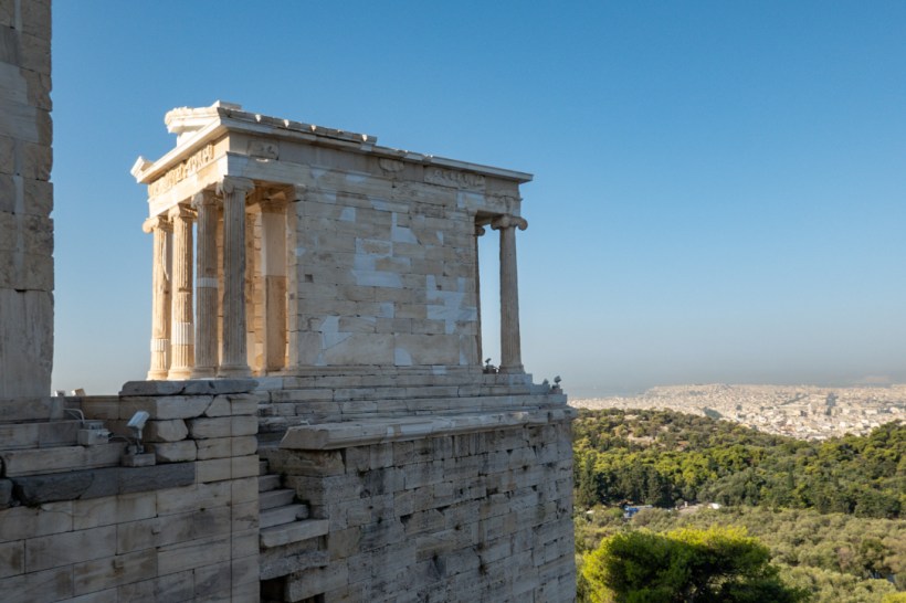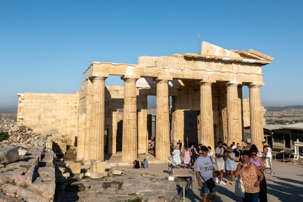 You walk in through the gate which has five doors, our guide called it the lobby. There’s a small temple to Athena Nike who used to fly around distributing victory to every fucker but the Athenians wanted victory all to themselves. They clipped her wings and put her in a cage-like temple so anyone entering the temple would know she was on their side. Bit of a dick move there, Athens.