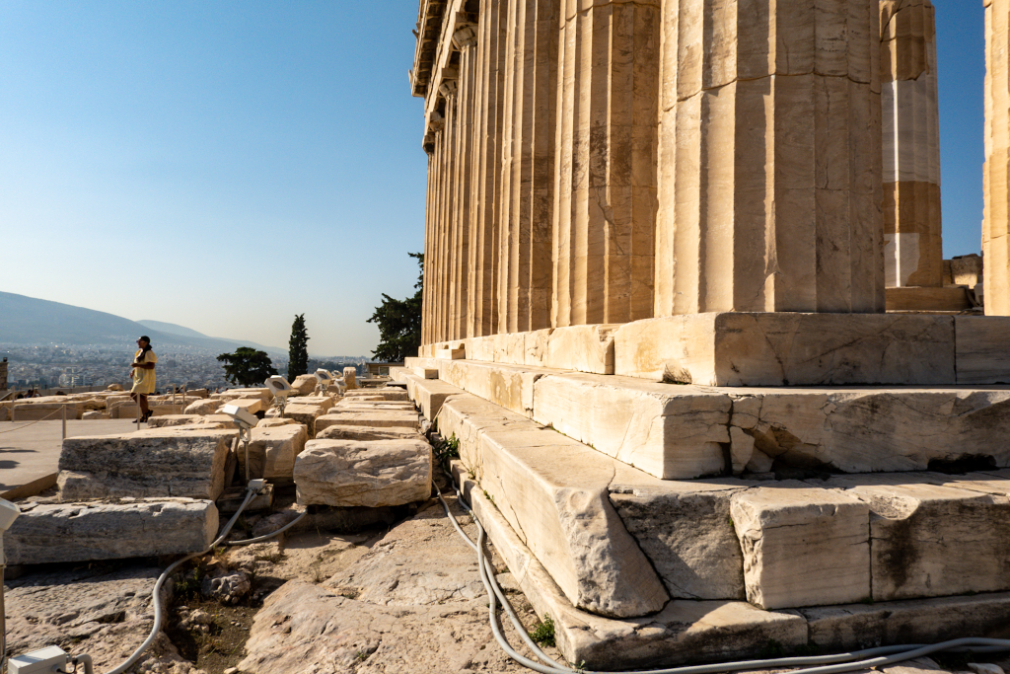 Guys, I’m not going to lie, I’m just going to bombard you with facts that we learned today and at the museum the other day because this whole thing is so fucking cool! The first thing Maria told us was that the Acropolis is the hill. “Acro” means high and “Polis” means town, so “Acropolis” just means up town. The temples on top of the hill are the third and final iteration and they were built in 15 years after the Persians ransacked the second iteration in 480 BC.