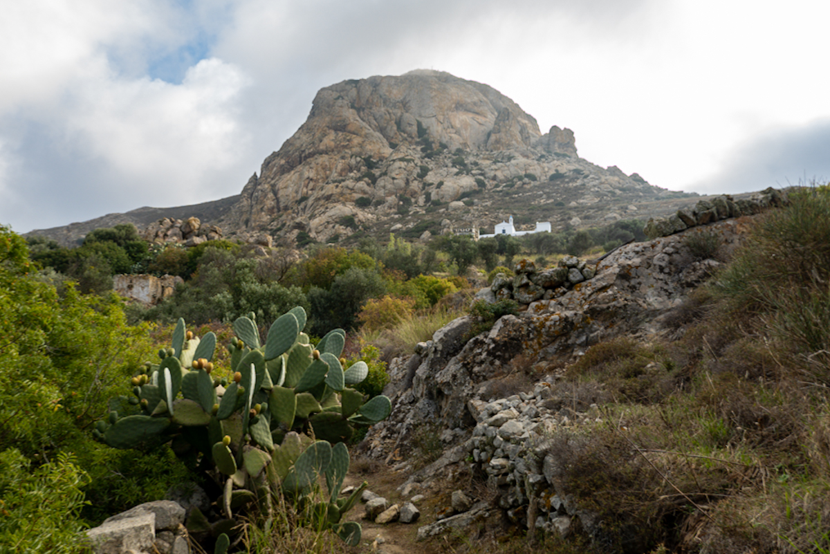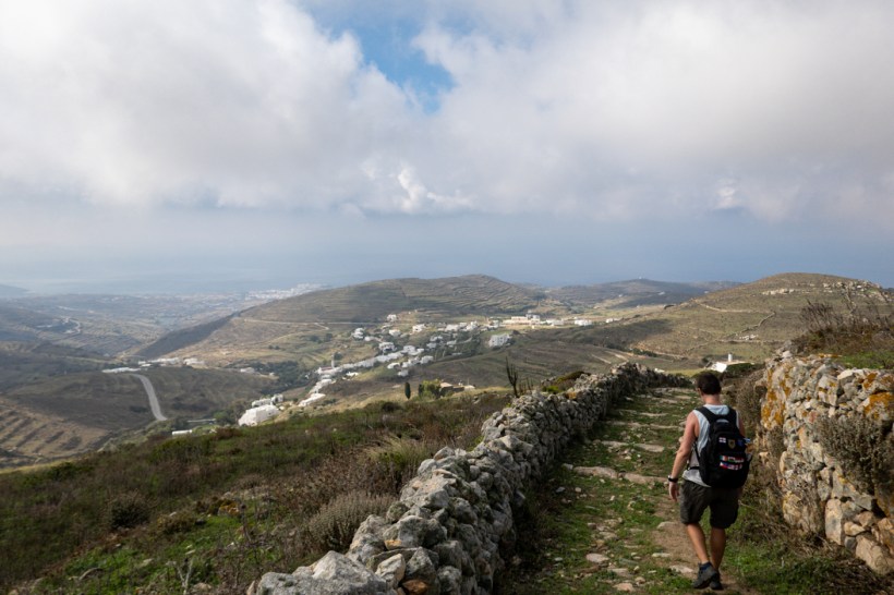 I say fuck off big mountain, it’s about 640 metres and you drive most of that but it does look kind of intimidating from the ground and it’s definitely one of the first things you notice the first time you scoot out of Tinos town. We hopped back onto the mean machine and headed to the village of Xinara where we were going to start walking. The wind had definitely picked up since yesterday, it was mostly fine but there were a few stretches of road where I struggled to keep the bike straight.