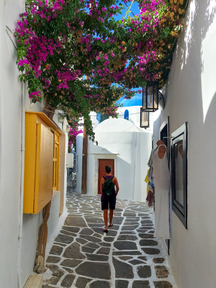 Lefkes doesn’t disappoint! It’s a pedestrian only village but there are loads of places to park. Tell you what though, Paros roads are definitely busier than Tinos, mostly filled with tourists on quad bikes, and the entrance to the village was lined with rental vehicles. Despite this it didn’t feel too busy.