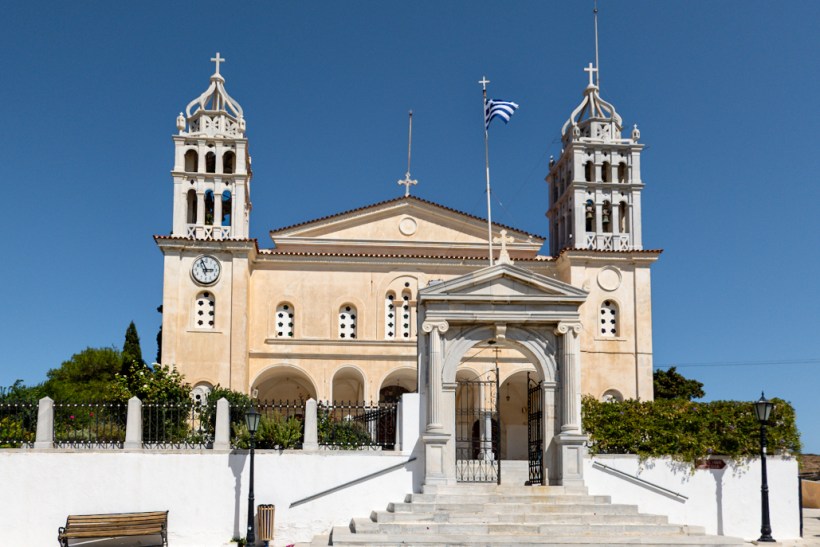 We wandered around and found the big church which was closed for siesta. This is another thing we weren’t aware Greece did but it makes sense given how bastard hot the afternoon is. Quiet hours at the places we’ve been staying are from around 2 or 3pm through until 5.30pm, then again from 11pm. It’s a very cool church though, it’s a shame we couldn’t go inside.
