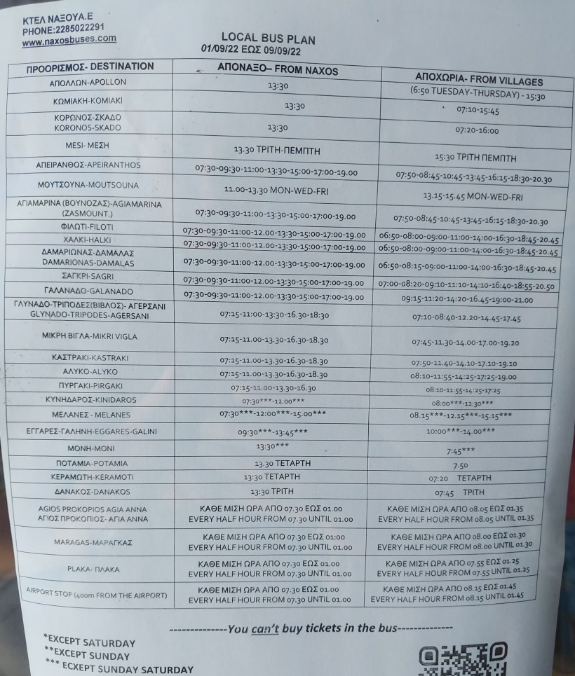 - You can’t buy bus tickets on the bus, you have to get them from the ticket office at the terminal, supermarkets or kiosks etc. At Maragas Beach you can buy them from reception.
