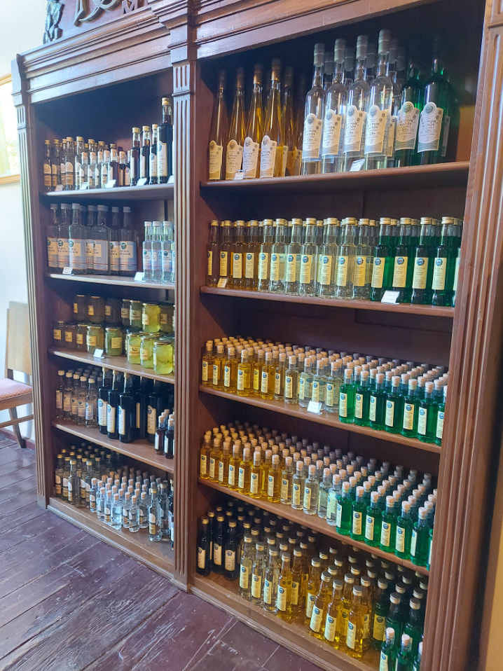 It wasn’t running today, we were told it runs pretty much every day in the winter though and it’s not the kitron fruit they use which is sort of a huge, lumpy lemon on steroids. It’s the leaves. They light a fire underneath a large pot, boil the leaves and ten hours later they have a clear product. Then they dye it different colours according to strength which is handy in case you’ve drank so much kitron words and numbers no longer make sense.