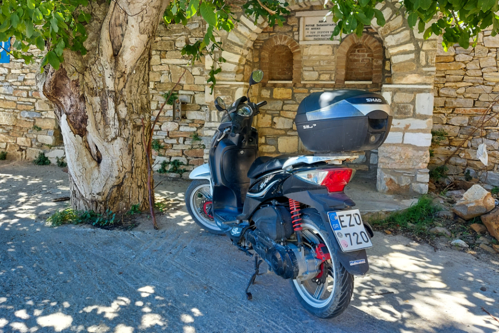Oh Naxos, you absolute dream! It’s bigger than the other islands we’ve visited, more mountainous and dramatic with the kind of narrow, winding roads that trigger all manner of fear of heights as you climb higher and higher on your little scooter. Every curve, every hairpin turn is an act of faith. And steering, obviously. But largely faith. I’d have crossed myself at every church we passed if there weren’t so bloody many and I wasn’t too busy clinging onto the handlebars.