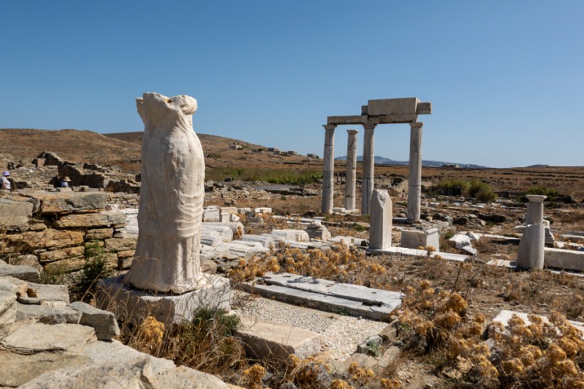 Delos, according to myth, is the birthplace of the twins, Apollo and Artemis. Zeus went and knocked up another woman who wasn’t his wife which was pretty standard practice for him. Leto, the woman in question, was persecuted by Hera, the wife of Zeus, who quite frankly would do better just to chop his cheating dick off rather than keep going after the women he shags. Hera cursed Leto so she couldn’t find anywhere to give birth to her twins so Zeus produced Delos for her where she gave birth at the Sacred Lake. The lake has since been drained to discourage mosquitoes which is fair enough. The bitey little cunts have chewed chunks out of me. Eradicating the risk of malaria far outweighs sacred spawning grounds of mythological gods.
