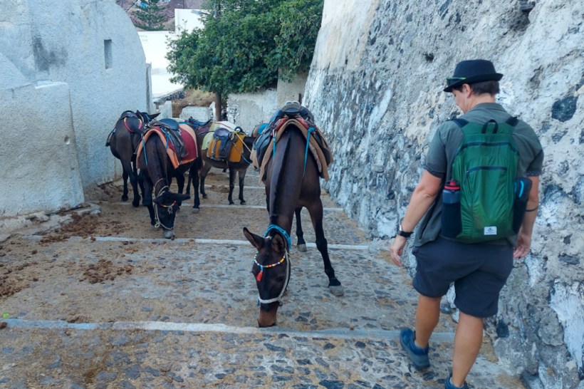 But this particular train came careering down the hill whilst an elderly Greek man shouted things from the back of one of them. I’m not sure if he was shouting at us or the donkeys, my Greek doesn’t extend beyond parakaló and efcharistó, but they were weaving down the steps at a pretty decent rate so I just pressed myself into a wall and tried not to get crushed. Definitely nearly got crushed. Turns out you can’t redirect a donkey by pushing it and swearing a bit.