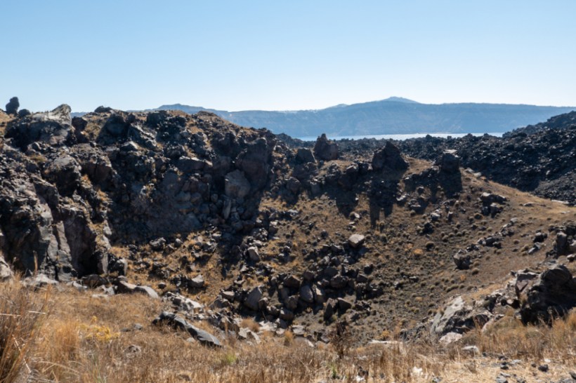 You pay your entrance fee then it’s a sweaty, 25 minute slog up a hill to look at some craters. I fucking adore volcanic landscapes. The craters are cool but looking out back towards Fira across the black lava field is unreal. Like another world. There’s a bit of hot steam around one of the craters accompanied by that distinctive sulphur smell. It’s not overpowering, it doesn’t permeate the air, but it does test the ol’ gag reflex when you catch a sudden whiff.