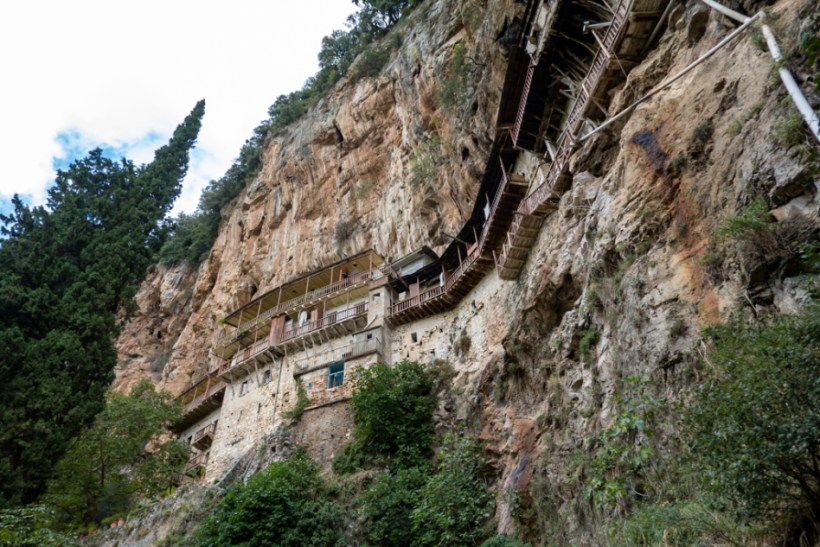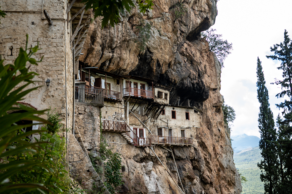 We left the car with several others by a church and walked the last 750 metres to the monastery. It’s challenging terrain but not hideous. You’re mostly descending until the building comes into view on your right and you hairpin back on yourself to head up to visit it. I say building, and it is, but they’ve built the fucker into the cliff so it looks like it’s clinging to the rock face and has absolutely no right to be there on account of, y’know, physics and shit. It’s incredible.