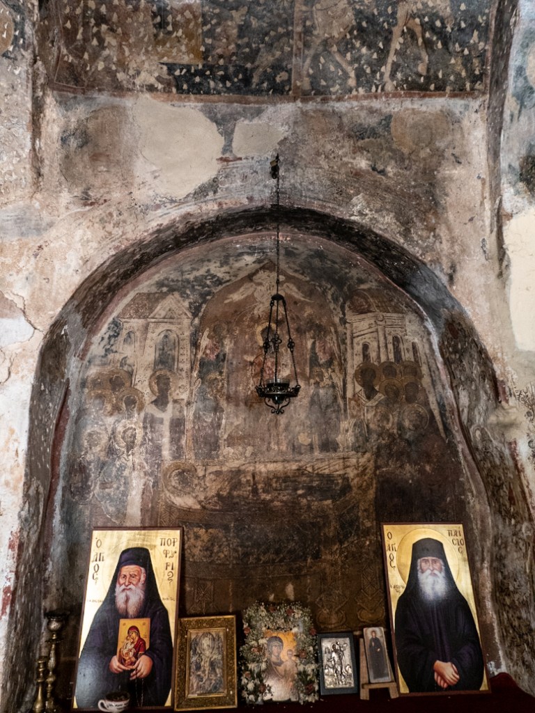 Next stop was Panagia Faneromeni Monastery because we wanted to look at the frescoes. I mean, we’ve seen a tonne of 11th century frescoes now but I keep wanting to put them in my eyeholes just in case… yeah I don’t even know just in case what. To be fair it’s right on the side of the road, you don’t have to go hunting for it. You just go into the courtyard and open the little door to the church.