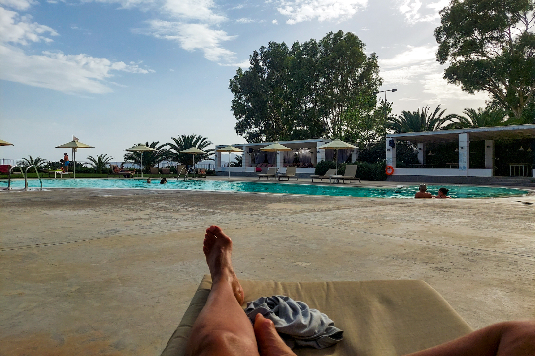 We’d fully intended to pack up our worldly belongings into the car then head to a campsite in Mystras near Sparta to explore the area, but Camping Gythion Bay was just too fucking lovely. Mystras was less than an hour’s drive away and if we stayed here it’d actually put us closer to our next destination than Mystras would. Fuck it. Day trip it would be. It was set to be another scorcher and it’d be nice knowing we’d have a pool and a carafe or two of wine waiting for us this evening.