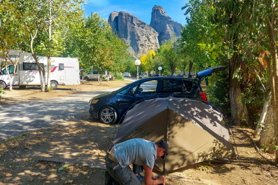 - If we hadn’t rented a car we’d have taken the first bus, which does stop right outside Vrachos Campsite where we were staying, all the way to Varlaam and just walked back via whatever monasteries we wanted to see.