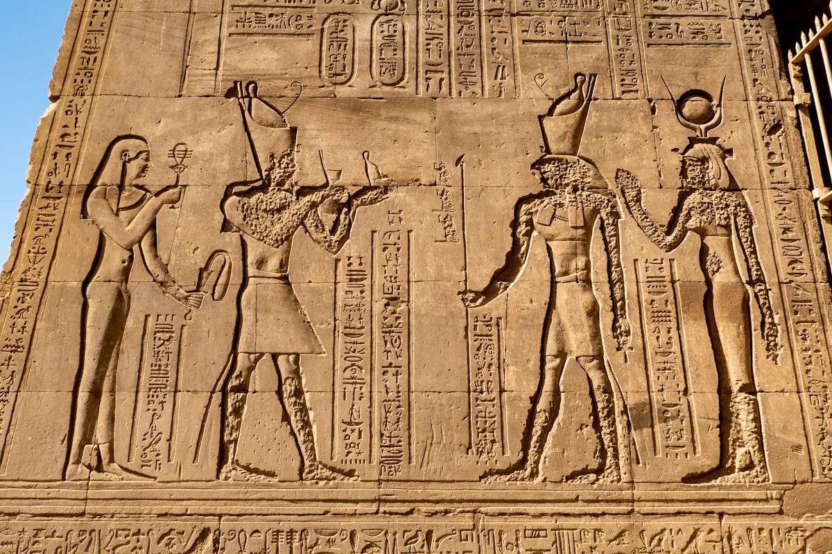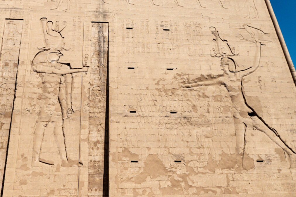As soon as we entered the grounds we were steered to the gauntlet of souvenir sellers by the tourist police so thanks for that, guys. We no thank youd our way to the ticket office, parted with the pounds and in we went to gawp at what is apparently one of the best preserved temples in Egypt. It was started by Ptolemy II in 237BC but wasn’t completed until Ptolemy XII in 57BC so it’s a relative baby, and you know you’ve been in Egypt a while when you start referring to 2000 year old temples as babies.