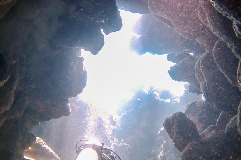 We got there, Modi signalled “cave” and I swam in behind him. This was okay actually. Quite wide, plenty of light, nice and tall… I watched as Modi’s fins disappeared around the corner and followed him and oh dear fuck no. It had completely narrowed but it was only short. I could see Modi, he could see me, I was fine and I was safe and then I panicked for literally no fucking reason, inhaled sharply and, of course, hit the ceiling. I stuck my hand out and Modi pulled me out. Well that wasn’t my proudest moment.