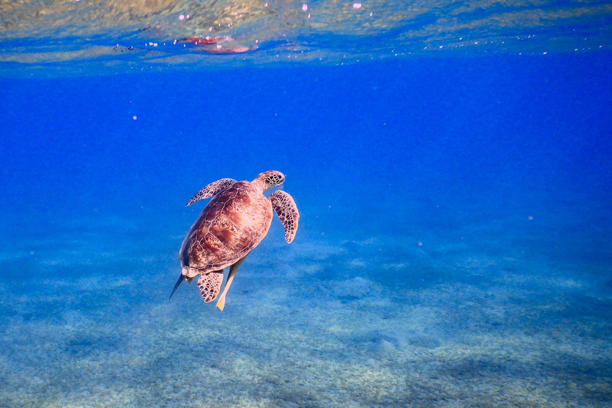 We spent about two hours staring at seagrass on day five. We saw probably four or five individual turtles, two of them were huge and had remora fish hanging off the back of them. As the turtles surfaced for air the fish switched to the bottom of them and accompanied them to the surface before rejoining them back on the seabed. It was magical to watch them.