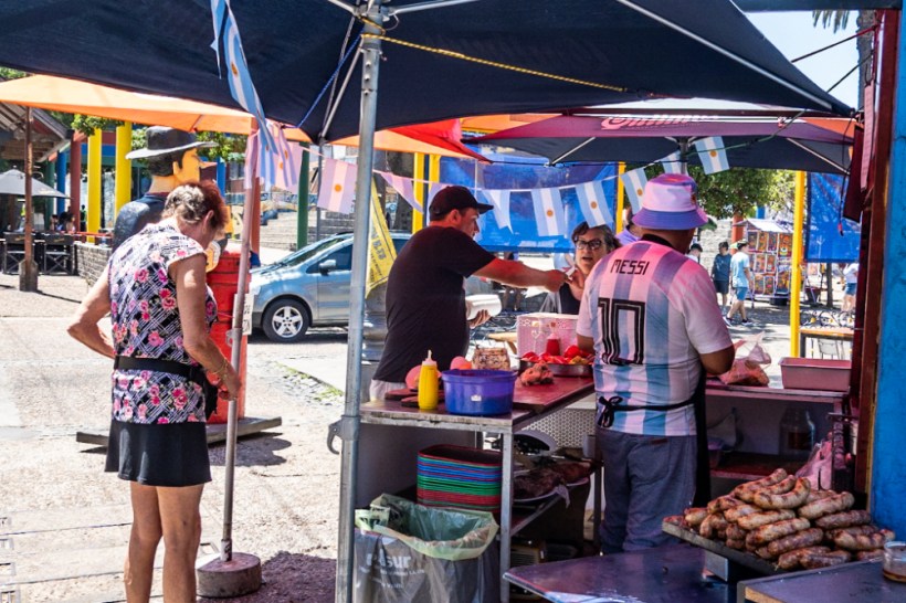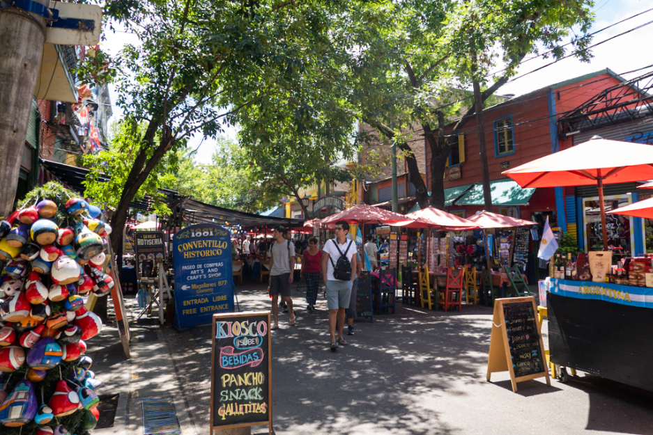 We wandered around looking at souvenir shops and admiring the local art. I’d buy it all if I could. One artist displaying their work on Caminito really stood out, they painted neon-bright depictions of the area with parts of the painting being actually three dimensional. I couldn’t stop looking at them, but we just can’t warrant splashing cash on art right now. Plus there’s no way we can keep it with us without damaging it and postage is expensive. Like, choke on your drink whilst spluttering, HOW MUCH?! expensive.